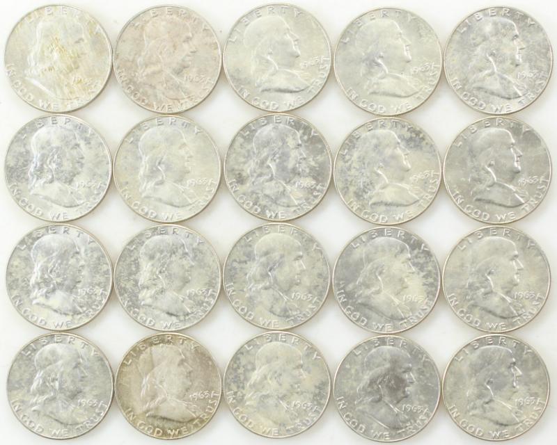1963-D BU Roll (20 coins) white but w/ a bit of haze, toned end-coin. (Image)