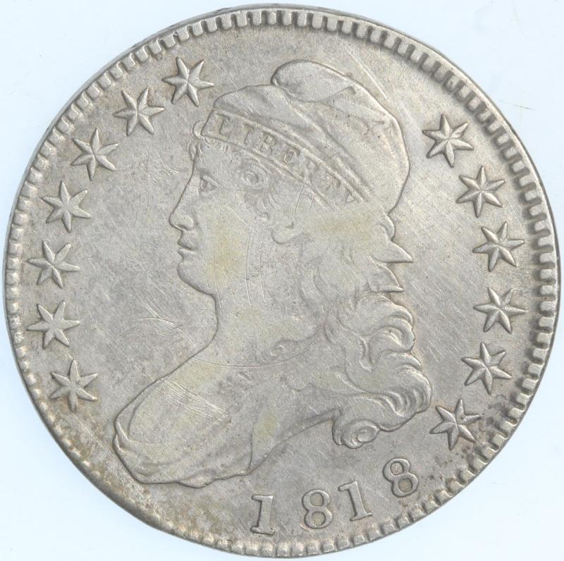 1818 O-114 F+ lightly cleaned and a few obv marks still ok for an earlier date Bust Half. (Image)
