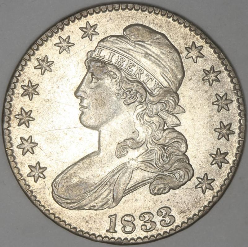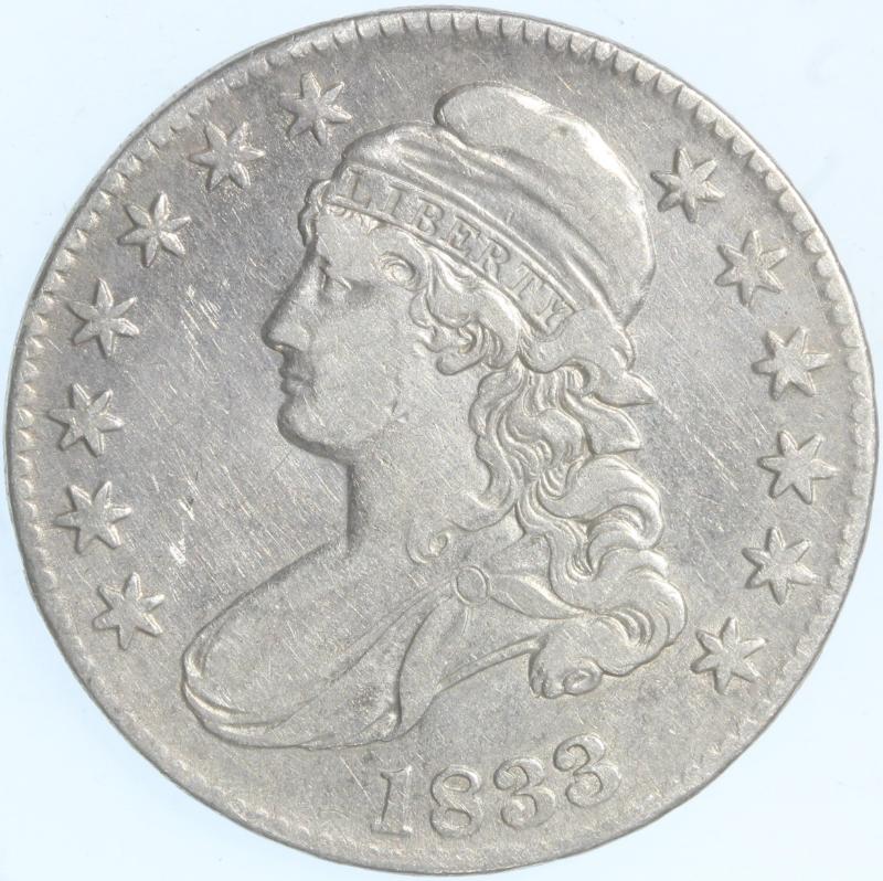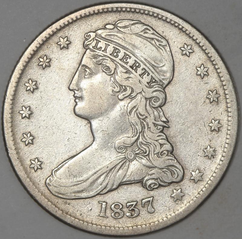 1837 Reeded Edge VF+ by wear, light hairllines, plus (3) 5mm scratches on rev left of the eagle's wing. Still ok. (Image)