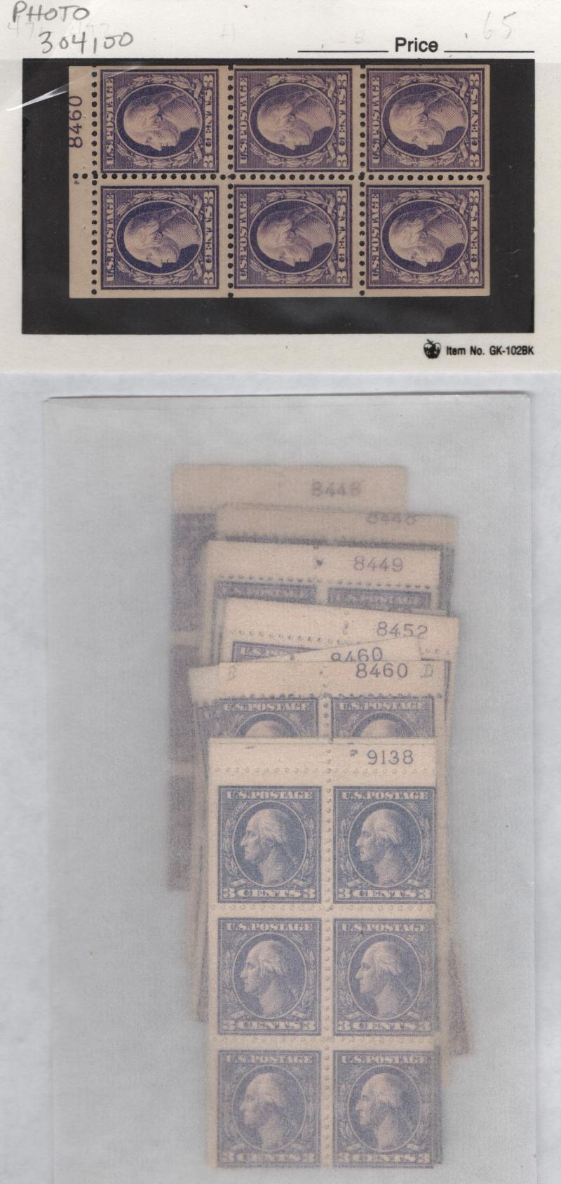 Booklet Pane Collection 1903-2006 in stkpgs in (4) binders incl #319g, 332 (2), 374a, 375a, 405b, 406a pos D, 425e pos D, 462a (3 incl 1 pos D), 463a, 501b (2), 502b, 583a, 720b (2), 1213c slogan 2 (2), 3050c (2), 3122Ef (3), 3138, 3252c (3), 3252e (2), 3278Fg (5), 3363a (6), 3461b (2), 3461c, 3483f (2), 3484Ag (3), 3535 (2), 3619e & f (3 ea), 3820De (2), C10a, C64b slogans 1-3; some miscuts showing partial pl#s & many self-adhesive panes w/ multiple pl#s (many 2 each plt #); largely NH, noted 375 flt, could be few others, pre-632a centering varies but many better than typical, later gen F-VF or better (Image)