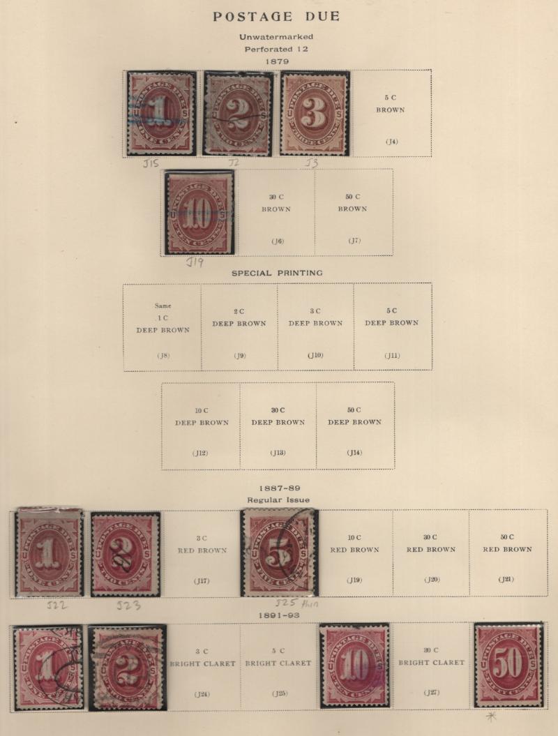 POSTAGE DUES Collection */O Group (37) 1879-1930s mounted on Scott Natl pgs; in sealed mounts so watermarks not verified; incl owner IDed Used: J25 superb but thinned, J34, J29 filler (not counted), Unused: J28, J41 NG, J52, J56; owner's CV $1,180 (NV); cond varies, mis-IDed, flts to sound, Avg to most F-VF (Image)