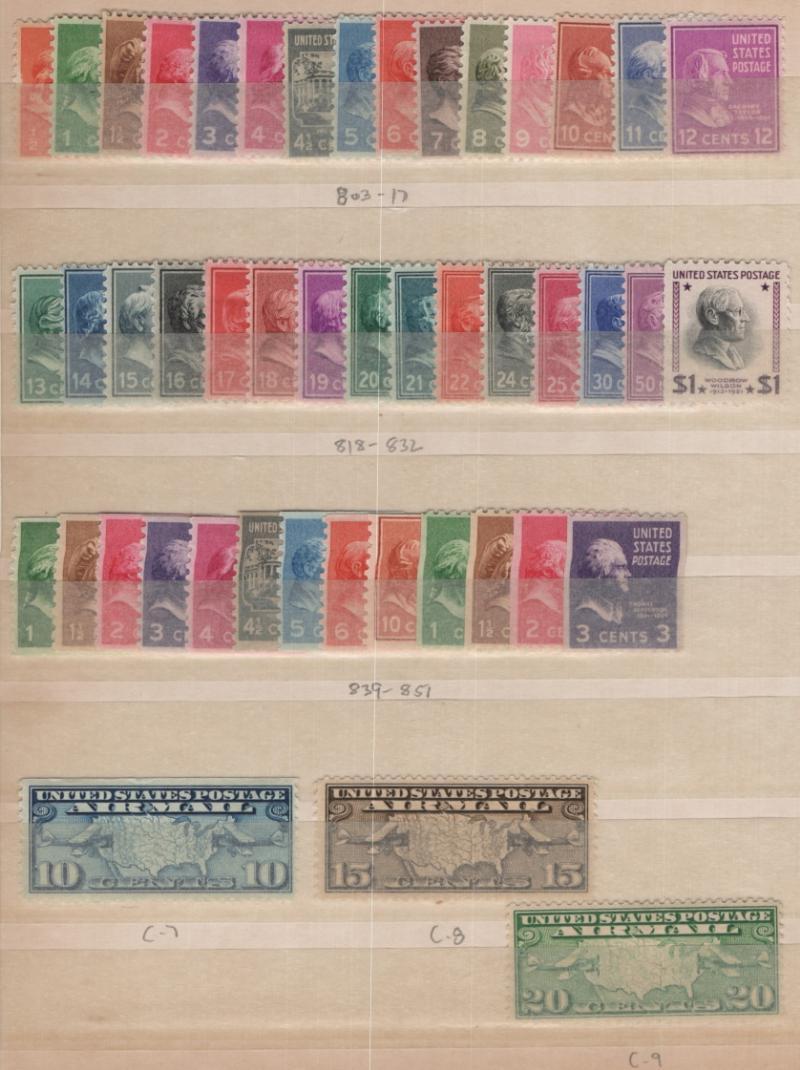 Overlapping Unused Collections abt (1000) 20th Cent incl commem collection 1924-69 hinged on Minkus pgs, appears cplt incl #614-16, 617-20, 620-21, 647-48, 656 pair, 704-15, 730-31 & more; near cplt commems 1929-68 mounted in Minkus All American, regular issue 1916-68 incl airmails mounted in moderately to well filled Minkus All American; Blks collection 1926-48 mounted in quad album incl 4th Bureau rotary, Wash Bicent, Natl Parks perf & imperf, Prexies up to 50¢ & Famous Americans; PBK collection 1940-47 mounted on W/A pgs incl Famous Americans & Overrun countries, more; gen F-VF H/NH (Proceeds benefit APS) (Image)