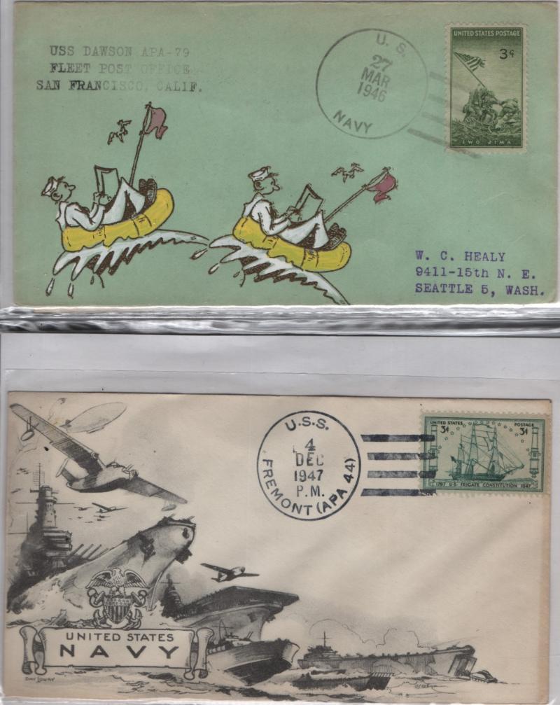 Accum abt (2600+) loose & in (3) shoeboxes mainly cacheted addr/UA FDC, events, naval, airmail & some patriotics mainly 1930s-70s, abt (100+) oversized FDC 1970s-2000s, abt (100) handpainted type cvrs, abt (100+) 19th Cent cvrs & postal cards mounted in a binder; few flts on earlies then F-VF (Proceeds Benefit APS) (Image)