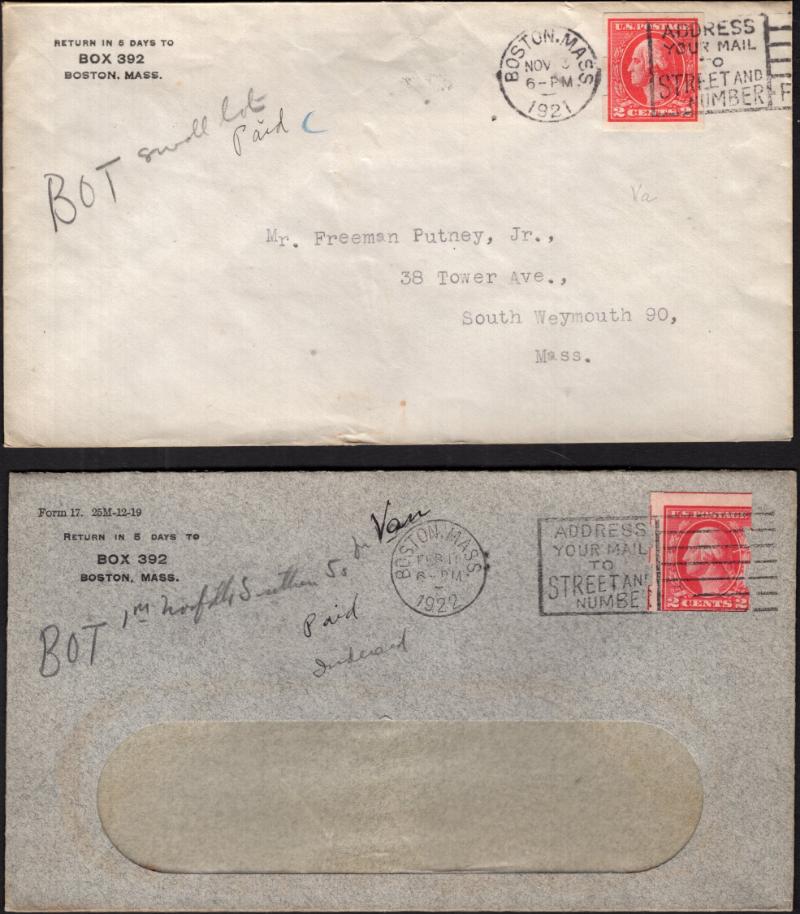 Abt (800) incl abt abt (250+) 1919-22 2¢ imperf Washingtons (offset & engraved) w/ Shermack Type III perfs all from same Boston company (25+ labeled #532, no time to verify), abt (500) 1890s addr to dealer H Deats, abt (55) 1911 w/ 1¢ imperf pairs (likely #383) all from same sender; expect some flts but much F-VF (Image)