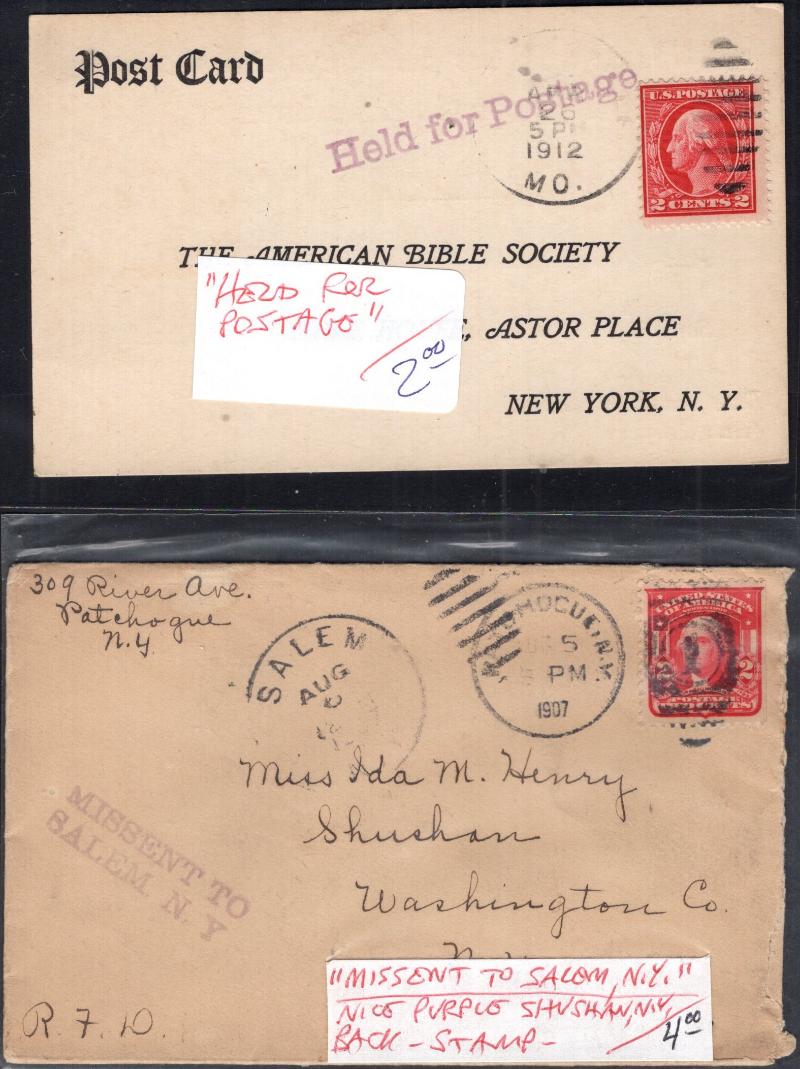 Collection (38) 1894-1977, each w/ Post Office Seal, couple from overseas, couple postage due, forwarded, numerous auxiliary marks; gen F-VF (Image)