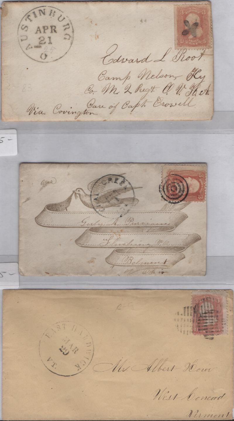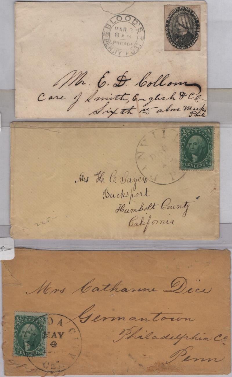 (61) Covers in small Lighthouse cover album, w/ 3¢ 1851-58 perf & imperf & 3¢ 1861 plus one 3¢ entire; variety of pmk styles from pen to cds to fancy, several from PA towns, a few enclosures, typical cond, gen F (Image)