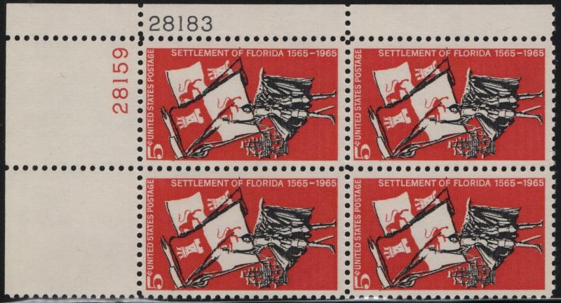 image 1271a VF NH, Plate Block, 5¢ Florida Settlement, Yellow OMITTED, yellow pl# omitted, 2005 PF Cert (CV listed for singles) (Image)