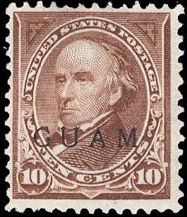 Guam, 1899, 10¢ Webster, brown, type II (Scott 9), o.g., hinge remnant, Fine to Very Fine, signed Bloch. Scott $3,750. Estimate $1,200 - 1,800. (Image)