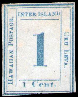 Hawaii, 1859, Numeral, 1¢ light blue on bluish white (Scott 12), position 2-A-X, clear margins to just cutting at bottom right, unused without gum; a small thin spot, otherwise about Fine, with 1997 A.P.S. certificate, a rare stamp in much nicer than normal condition. Scott $15,000. Estimate $3,500 - 5,000. (Image)