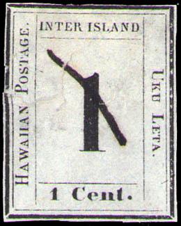 Hawaii, 1863, Numeral, 1¢ black on grayish (Scott 15), position 4-B-IV, 4 margins, pen cancel; a couple expertly repaired faults, Fine appearance. Scott $2,750. Estimate $400 - 600. (Image)