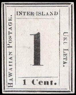 Hawaii, 1864, Numeral, 1¢ black on laid paper (Scott 23), position 8-A-IX, margins all around, unused without gum, Fine. Scott $300. Estimate $100 - 150. (Image)