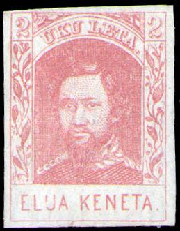 Hawaii, 1861, King Kamehameha IV, 2¢ pale rose, vertically laid paper (Scott 28), 4 nice margins, fresh, o.g. (some skips), very lightly hinged, Very Fine. Scott $325. Estimate $200 - 300. (Image)