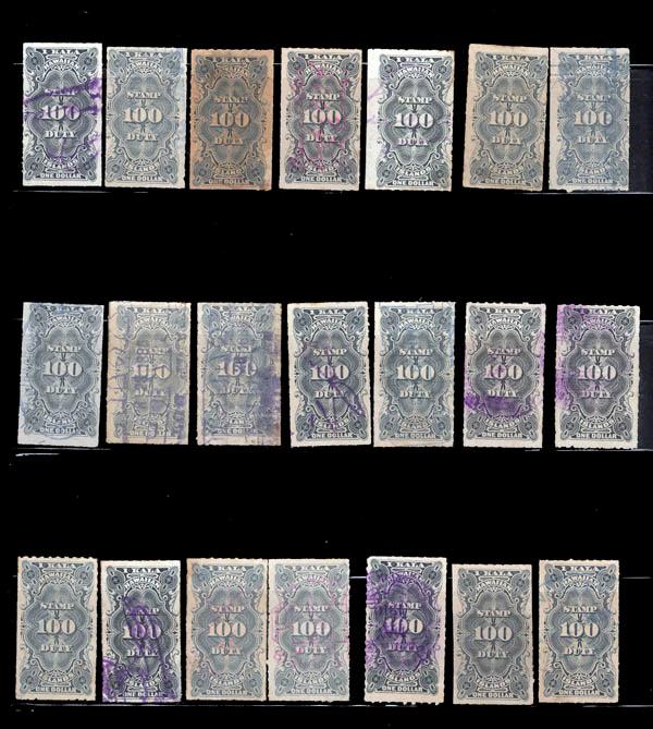 Hawaii, Revenue, 1877, $1 gray (Scott R3a), a neat assemblage of 30 with various cancels for this issue, Fine to Very Fine. Scott $390. Estimate $200 - 300. (Image)