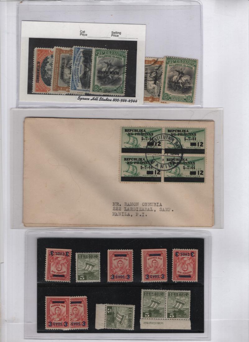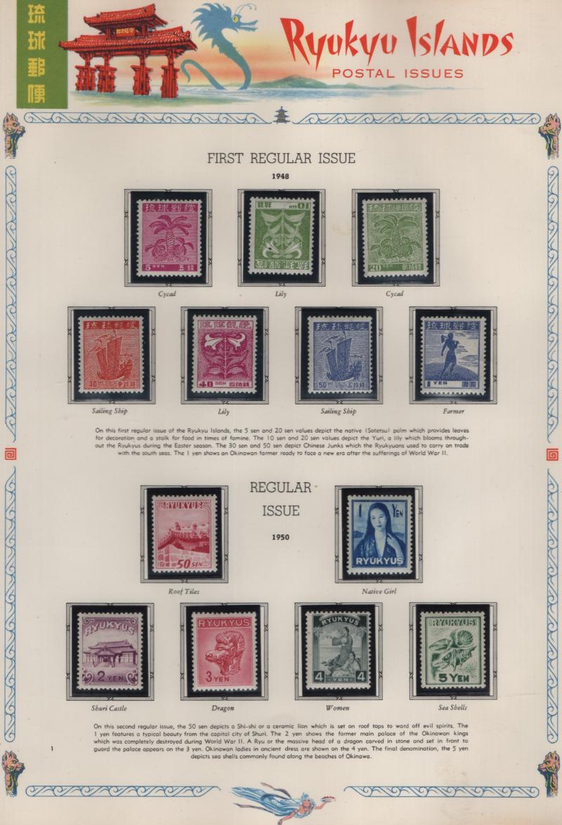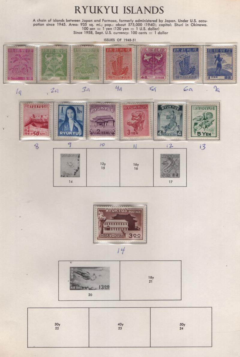 Collection */O in (2) binders on homemade or loose album pgs; Canal Zone #4-5, 14 unused, many used Ovpts, */O later incl BOB, J1-3 used; Cuba 225-26 H, E2 used; Guam 1-4, 8, 10 H; Hawaii 10S, 29, 36 used, 40 HR, 49 used, 73 DOG, 78 used; Philippines many used earlies, 368-69 NH, O1-4 H, 354-60 H, C18-28 H, E6 imperf pair H; Puerto Rico J1 HR, RE51 hs cancel; a few duplicates, several cut squares throughout, some flts, F+; 2nd binder w/ Ryukyus unused in mounts, incl 1a-7a, fairly cplt 1953-72, airmails, likely all NH gen F-VF+ (Image)