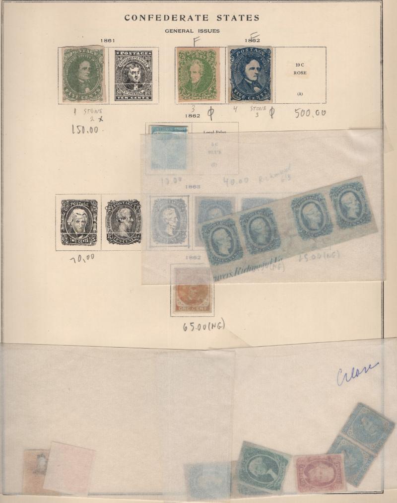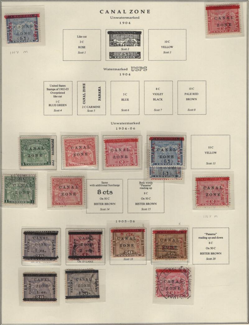 Scott album w/ pgs for Possessions, incl CSA w/ Tasco bklt w/ stamps, several fakes, best is #12 gutter pair w/ part Richmond imprint; Canal Zone #4-5 used, both */O laters w/ some PBKs or plate # singles; (6) Guam stamps; Philippines a few Spanish, US Ovpts, many */O defins, some Japanese & BOB; a few Puerto Rico; gen F+ H/NH (Image)