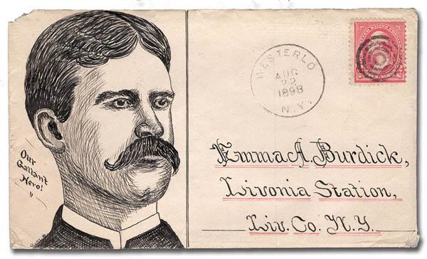 1898, 2¢ Washington, type IV, red (Scott 279B), used on a Spanish American War hand drawn cover from upstate New York, with interesting content, Fine to Very Fine. Estimate $75 - 100. (Image)