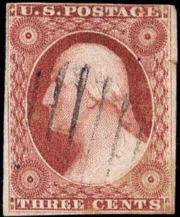 1851, 3¢ Washington, orange brown, type II (Scott 10A), margins large to clearing, orange red cancel, Fine to Very Fine. Scott $180. Estimate $75 - 100. (Image)