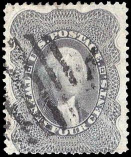 1860, 24¢ Washington, gray (Scott 37a), well centered for this issue, with nice color and a fairly light grid cancel, Fine to Very Fine. Scott $1,450. Estimate $400 - 600. (Image)