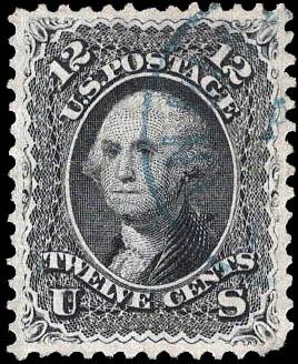 1861, 12¢ Washington, black (Scott 69), marvelously well centered, blue c.d.s., Very Fine to Extremely Fine. Scott $105. Estimate $75 - 100. (Image)