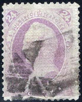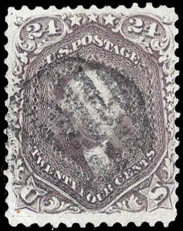 1863, 24¢ Washington, lilac (Scott 78), well centered and very fresh, lightly struck grid cancel, Very Fine. Scott $425. Estimate $250 - 350. (Image)