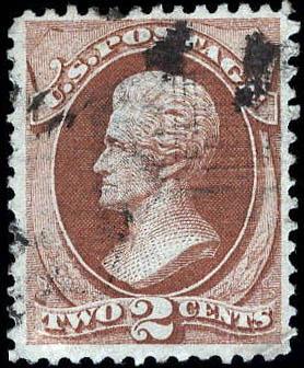1870, 2¢ Jackson, red brown, I. grill, N.B.N.C. printing (Scott 135A), segmented cork cancel, Fine to Very Fine, with 2026 P.F. certificate graded F-VF 75. Scott $350. SMQ $200. Scott Stamp Values $200. Estimate $150 - 200. (Image)