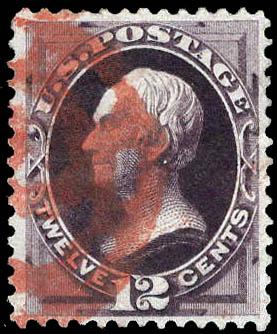 1873, 12¢ Clay, blackish violet, C.B.N.C. printing (Scott 162), red New York Foreign Mail cancel, Fine to Very Fine, with 2025 P.S.A.G. certificate graded F-VF 75. Scott $165. Estimate $75 - 100. (Image)
