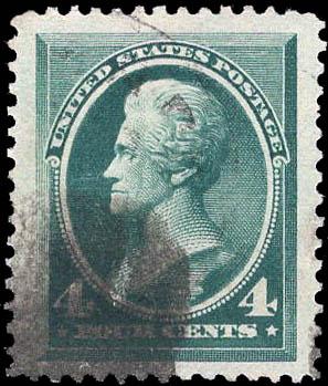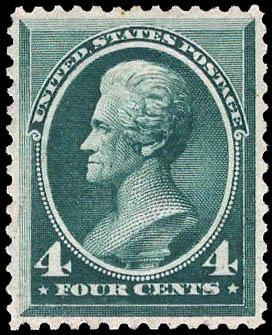 1883, 4¢ Jackson, blue green (Scott 211), o.g., lightly hinged, Very Fine, with 2026 P.S.A.G. certificate conservatively graded VF 80. Scott $225. SMQ $300. Scott Stamp Values $225. Estimate $200 - 300