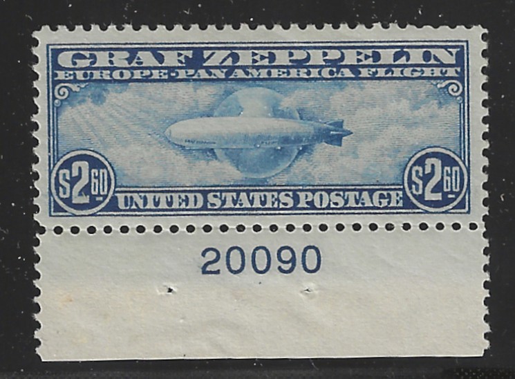 C15 "$2.60 Blue," 1930 Zeppelin Issue, Bottom Margin P# Single, Unused, OG, MNH, VF-XF, Sound Cond., With 2014 "PF" Cert. Stating "Genuine, Never Hinged", SCV is $975.00 (VF-XF) (Image)
