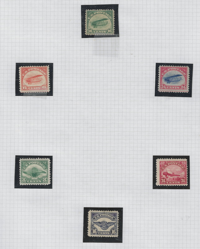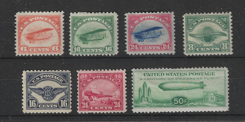 C1-C6, C18, Seven Diff. Mint Stamps, 1918-33 Issues, Generally Sound Cond., OG, Hinged, F-VF, SCV is $367.50 (Image)