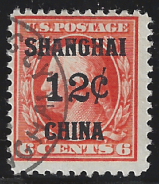 K6 "12 c. Shanghai" (1919 Issue), Used, Shanghai Cancel, Sound Cond., Fine, SCV is $190.00 (Image)