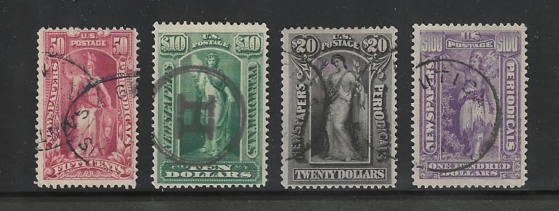 PR119, PR122, PR123, PR125, Four Diff. Used Stamps, 1895-96 Issues, Sound Cond., F-VF, #PR123 with 2006 "APS" Cert. Stating "Genuine", SCV is $750.00 (Image)