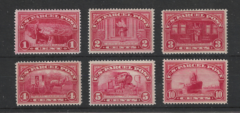 Q1-Q6 (6), "1 c. to 10 c. Parcel Post", 1913 Issue, Sound Cond., OG, MNH, F-VF, SCV is $278.50 (Image)