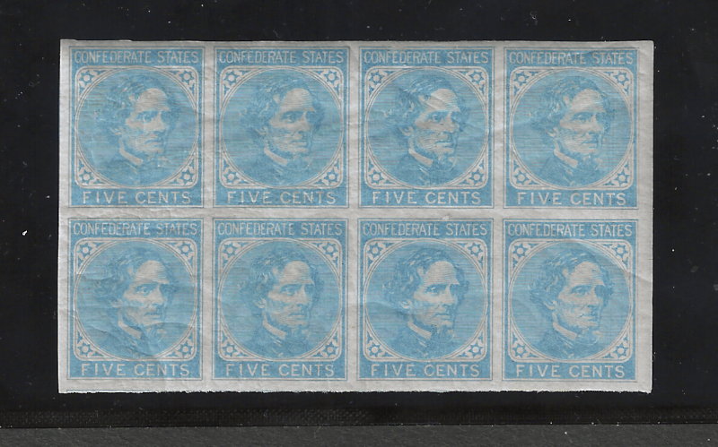 6 Blk. of 8, "5 c. Light Blue", De La Rue Printing (1862 Issue), MNH, OG, Typical Light Gum Bends, Sound Cond., VF-XF, SCV is About $600.00 (MNH, VF-XF) (Image)