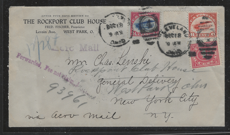 C1, C3, Tied on Single Cover by Cleveland, Ohio (Dec. 18, 1918) C.D.S., Sent to New York, With Dec. 22 & Dec. 28, 1918 Backstamps, Cover is Cataloged as AAMC #110, Revenue Stamp #R228 is Tied on the Cover (Unusual), Neatly Opened at Left, Sound Cond., F-VF (Image)