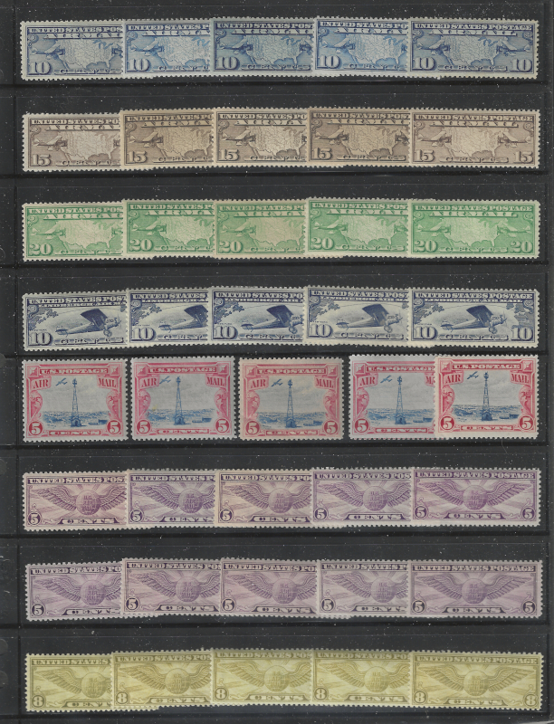 C7 // C46, 22 Diff. Mint Stamps (5 of Each), 1926-52 Issues, Sound Cond., OG, MNH, F-VF, SCV is $663.00 (Image)
