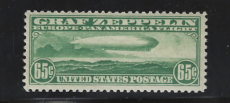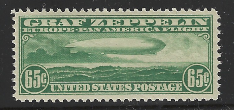 C13 "65 c. Green," 1930 Zeppelin Issue, Unused, OG, MNH, Sound Cond., VF-XF, With 2007 "PSE" Cert. Stating "Genuine, Never Hinged", SCV is $400.00 (VF-XF) (Image)