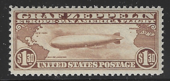 C14 "$1.30 Brown", 1930 Zeppelin Issue, Unused, OG, MNH, VF-XF, Sound Cond., With 2014 "PF" Cert. Stating "Genuine, Never Hinged", Graded VF-XF 85, SCV is $625.00 (VF-XF) (Image)
