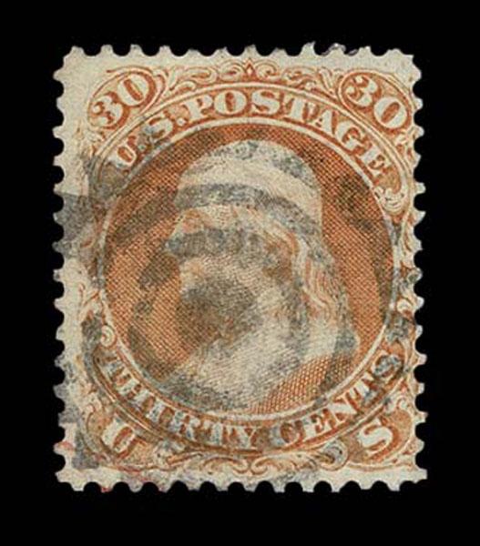 UNITED STATES: 1861 30c orange, used with black large Outlined Five Point Star cancellation, type of Fort Wayne IN. Crowe Cert.(2025). (Skinner-Eno ST-O 9) Sale and Lot Updates Suggested Bid $175-100 (Image)