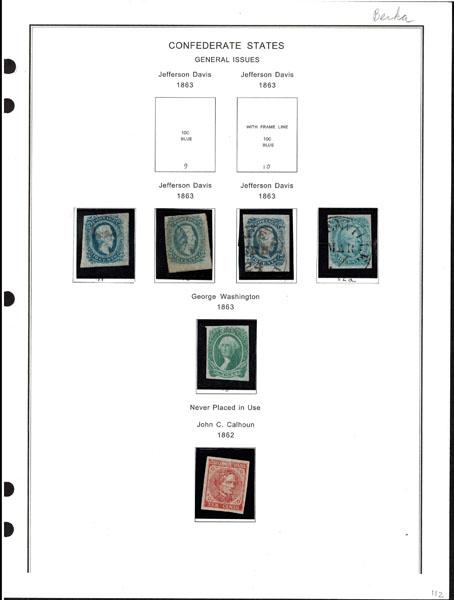 Revenues.UNITED STATES: Confederate States, cute collection of six used and unused stamps and seven covers, #2e, #4b, #6, #7 (2) pairs, #11, #12, nice stamps and towns.