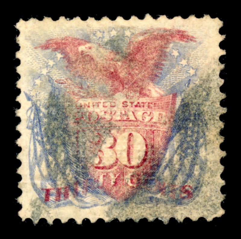 UNITED STATES 1869 #121 STAMP VF /O. Thirty cents Shield, Eagle and Flag, the stamp is canceled and well centered. 2019 certificate from Renaud de Montbas Expert. Scott $630.00 CAD. (Image1)