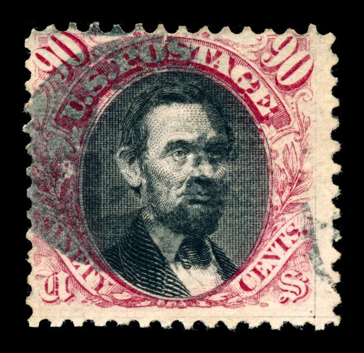 UNITED STATES 1869 #122 STAMP VF /O. Ninety cents Lincoln, the stamp is canceled and fault free. 2020 certificate from Renaud de Montbas Expert. Scott $2900.00 CAD. (Image1)
