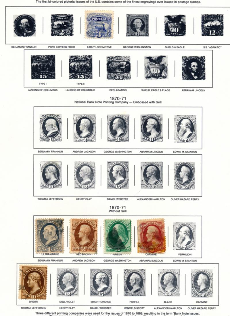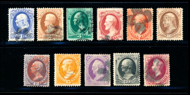 UNITED STATES 1870-1871 #145-55 STAMPS F-VF /O. Complete set of 11 used stamps printed by the National Bank Note Company. Scott $2100.00 CAD. (Image1)