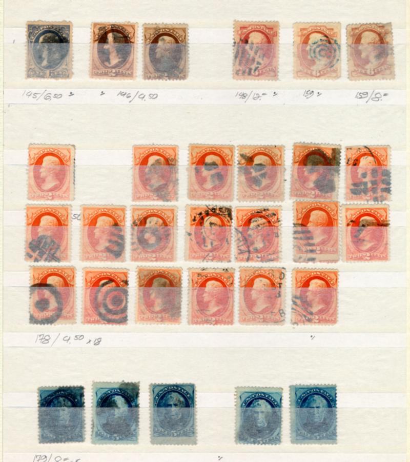 UNITED STATES 1870-1940 ACCUMULATION STAMPS F /O. Stockbook containing an accumulation of 1275 mostly all used stamps (between #145 and #904) with some heavy duplication. Need to be check for the early stamps. Starting bid $65.00. (Image1)