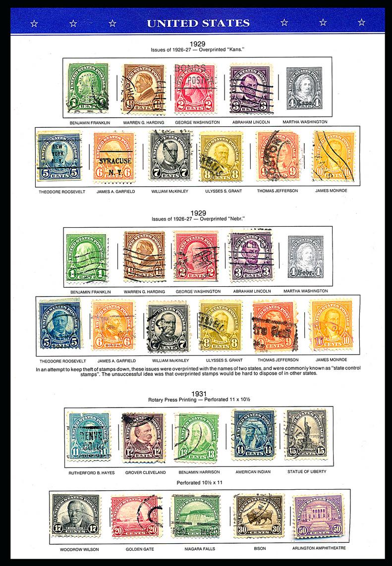 UNITED STATES 1875-1975 COLLECTION STAMPS F-VF */**. Album containing a collection of several hundred stamps and souvenir sheets. I noted: #240/o, 250/o, 276-76A/o, 290*, 311/o, 314**, 319**, 323-27*, 342/o, 367-69**, 370-71**, 372-73**, 383-84**, 410-13**, 479-80/o, 486-89**, 490-97**, 548-50**, 575-77**, 578-79**, 581-91**, 597-603**, 604-06**, 610-12**, 614-16**/*, 617-19**, 620-21**, 622-23**, 647-48**, 655-57**, 704-15**, 803-34**, 839-51**, 1030-53**, C1-3*/**, C18**, E11*, F1*, J4-06/o, J19/o, J35/o, J60*, J77*, JQ1-5*/**, QE1-4. Must be examined. Scott $8200.00 CAD. (Image1)