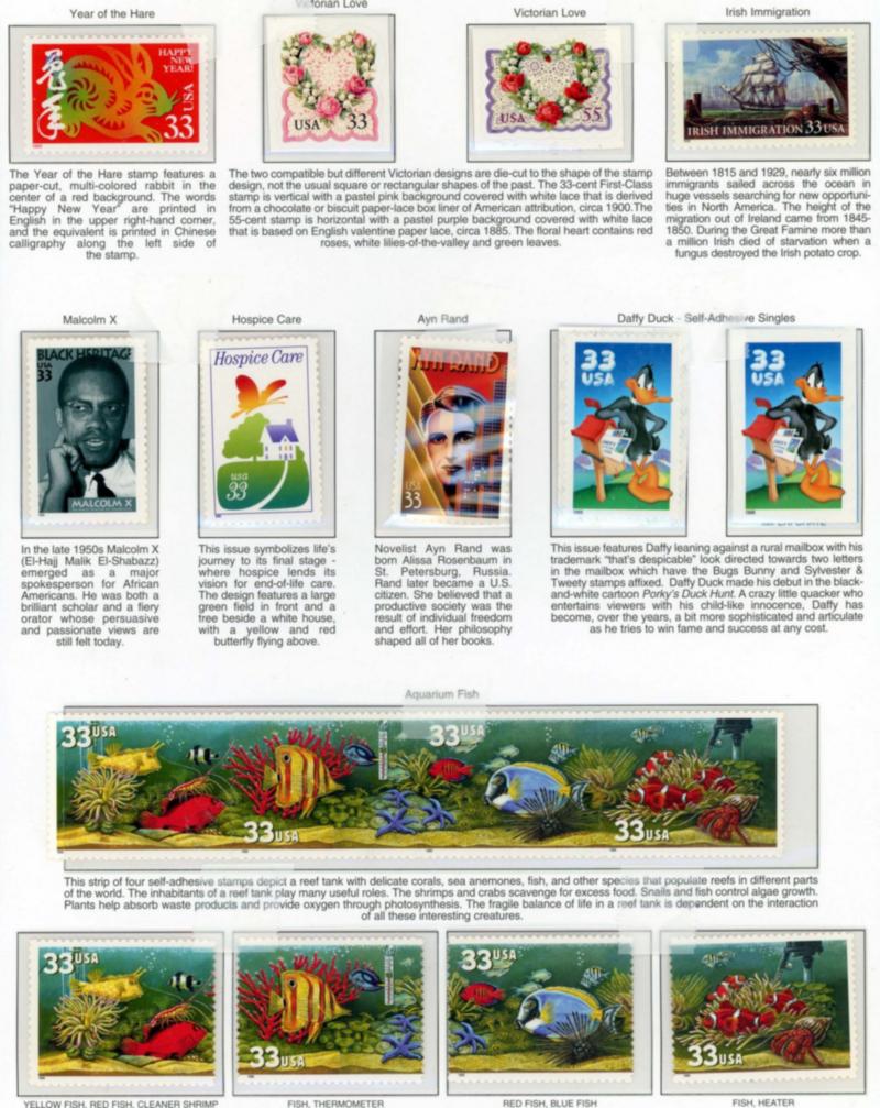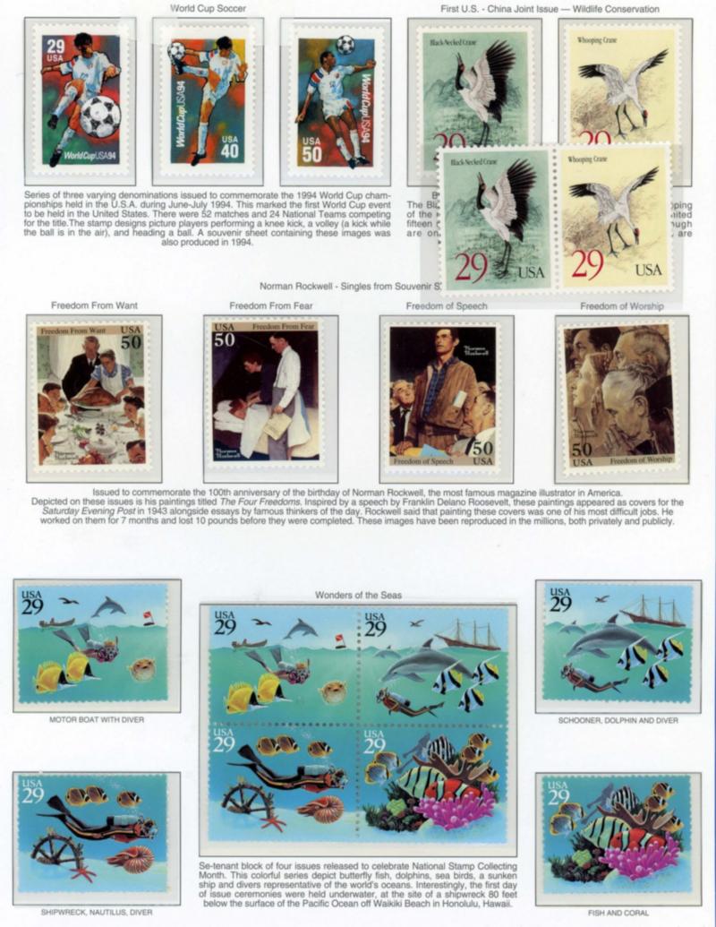 UNITED STATES 1994-1999 YEARBOOK COLLECTIONS + SOUVENIRS SHEETS VF **. Lot of 6 annual collections complete with stamps and mini sheets + 10 souvenir sheets. Total face value is US $250.00 ($345.00 CAD). Starting bid $140.00. (Image1)
