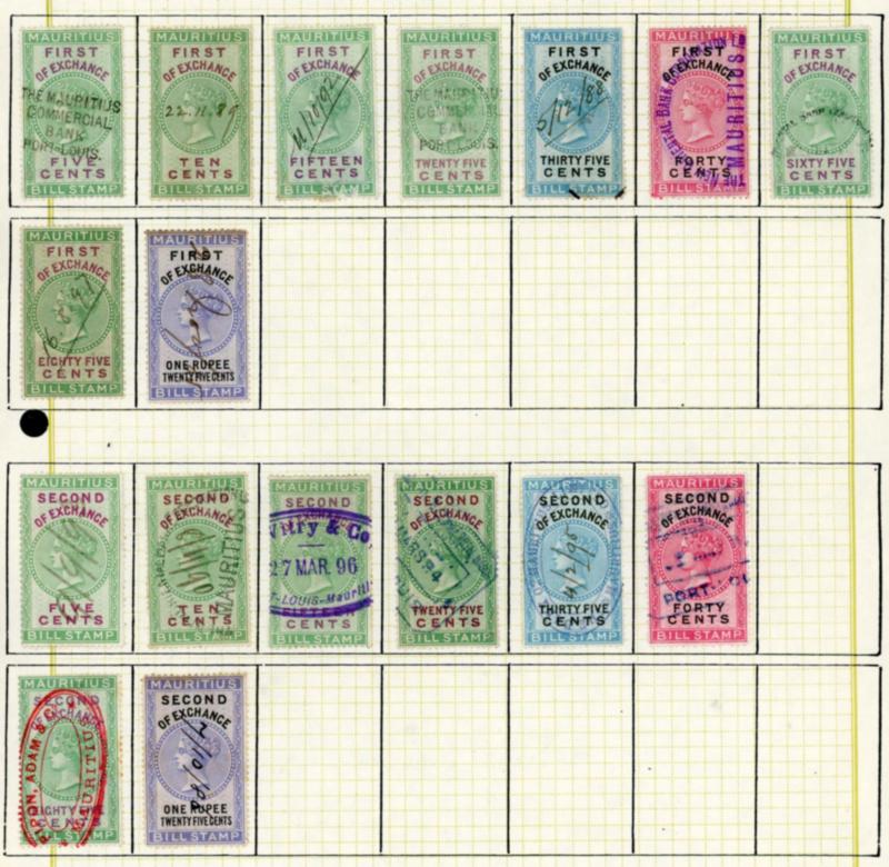 UNITED STATES + WORLD STAMPS F-VF */**/O. Stockbook containing a selection of 163 revenue stamps from Mauritius plus a stockbook with stamps from Grenada, Panama, Sweden, United States and Wallis and Futuna. Need to be examined. Starting bid $100.00. (Image1)