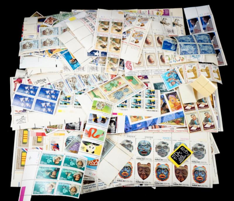 UNITED STATES FACE VALUE LOT STAMPS VF **. Small box containing mint never hinged stamps in mini sheets, blocks, strips and singles with a total face value of US$586.94 ($821 CAD) not including 521 stamps with no denomination (Bulk rate, First class, Forever, G, H, Love etc..). Need to be look at. Starting price $360.00. (Image1)