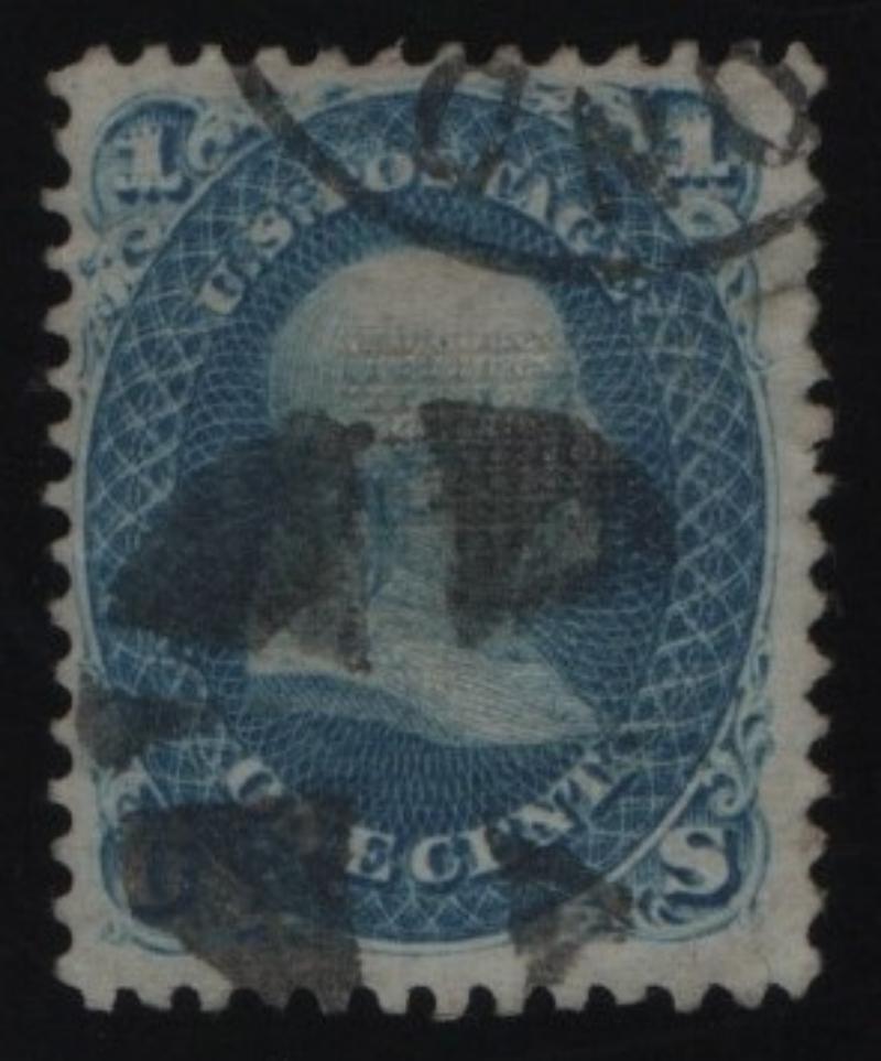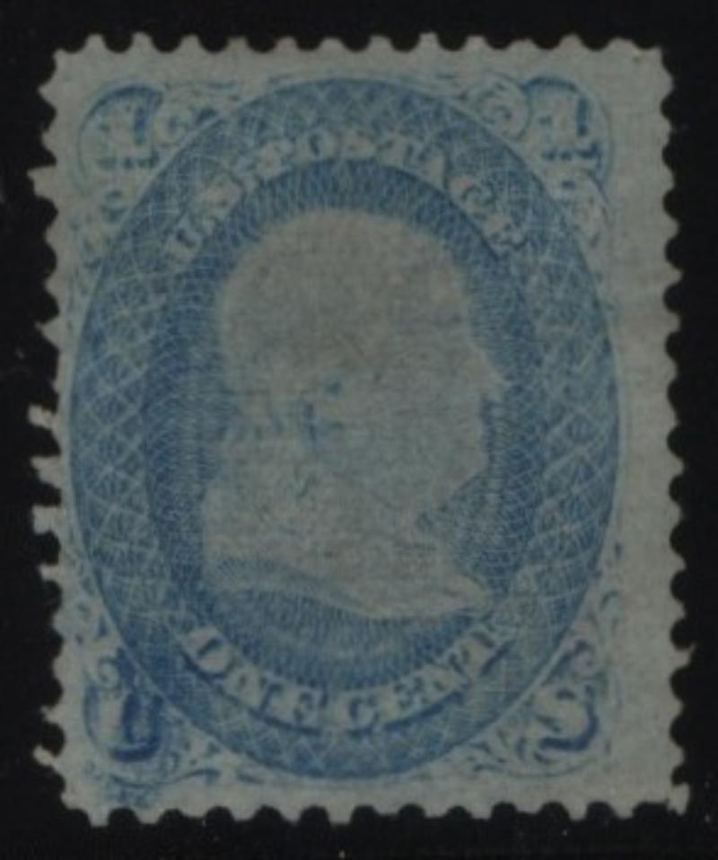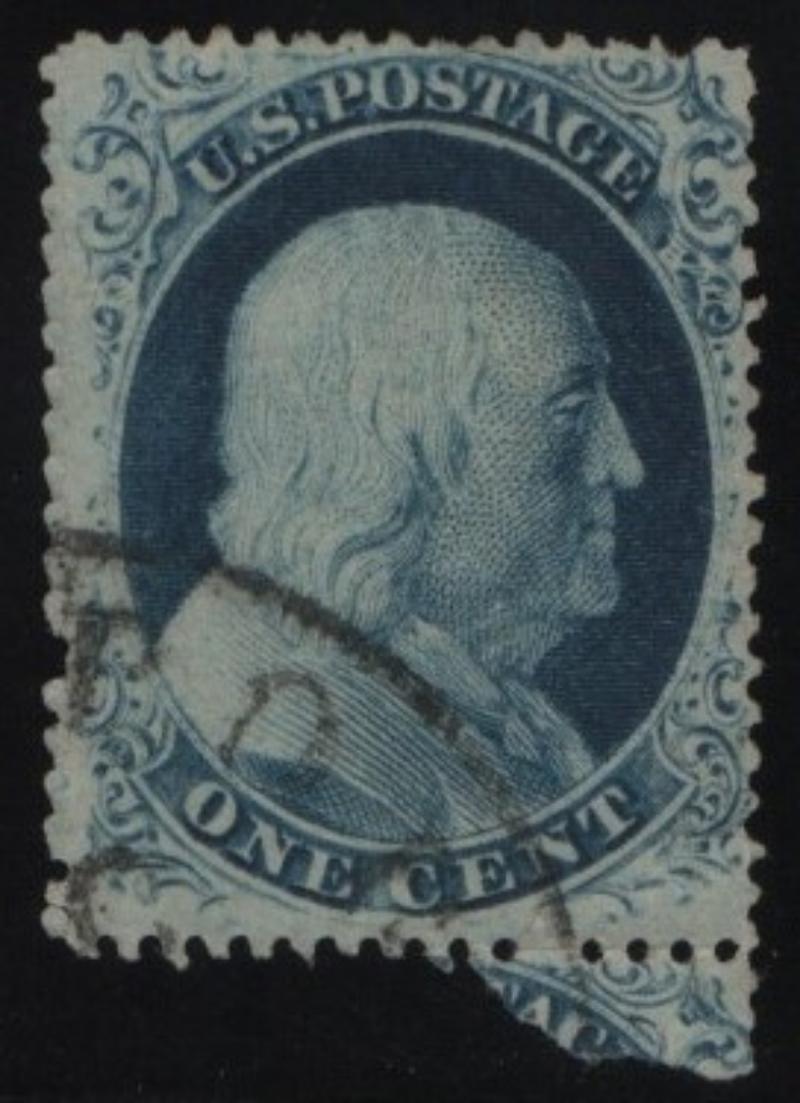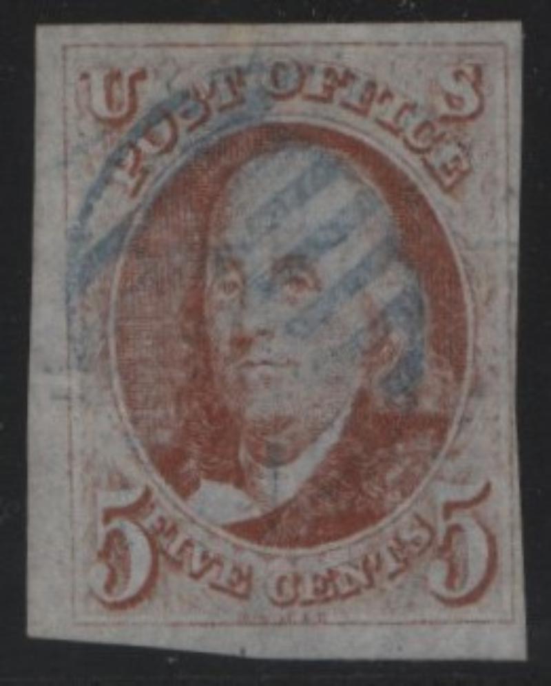 1b VF 5¢ orange brown Franklin, blue grid cancel (Image)