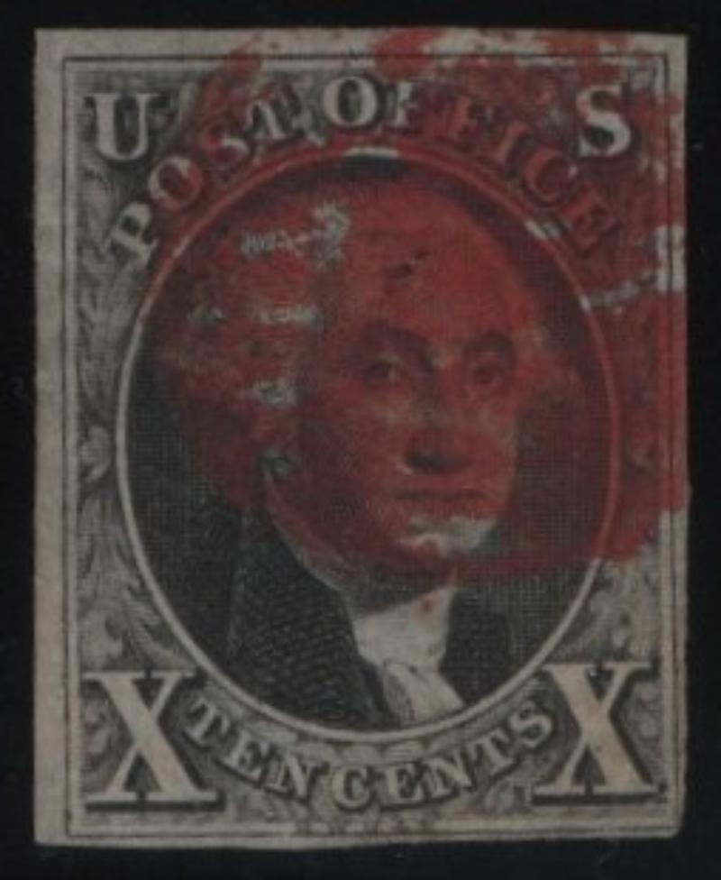 2 F-VF+ 10¢ Washington, bold red cancel, (4) margins (Image)