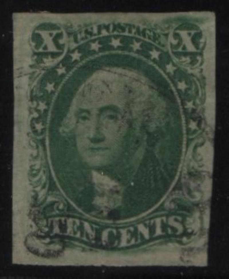 15 XF 10¢ green imperf, Type III, light cancel, (SMQ for XF $300) (Image)